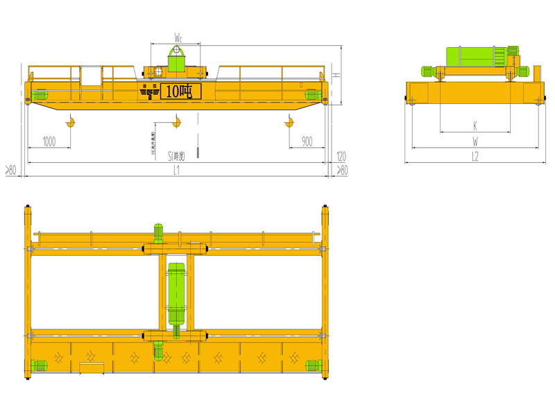 LH型電動葫蘆10噸雙梁橋式起重機(以下簡稱10噸起重機)是按標準JB/T3695-1994設計制造的,與CDI、MDI等形式的10噸電動葫蘆配套使用,成為一種有軌運行的10噸輕小型起重機,其適用起重量為10噸,適用跨度為7.5-35米,工作級別A3~A5,工作環(huán)境溫度在-25℃ ~ +40℃范圍內。