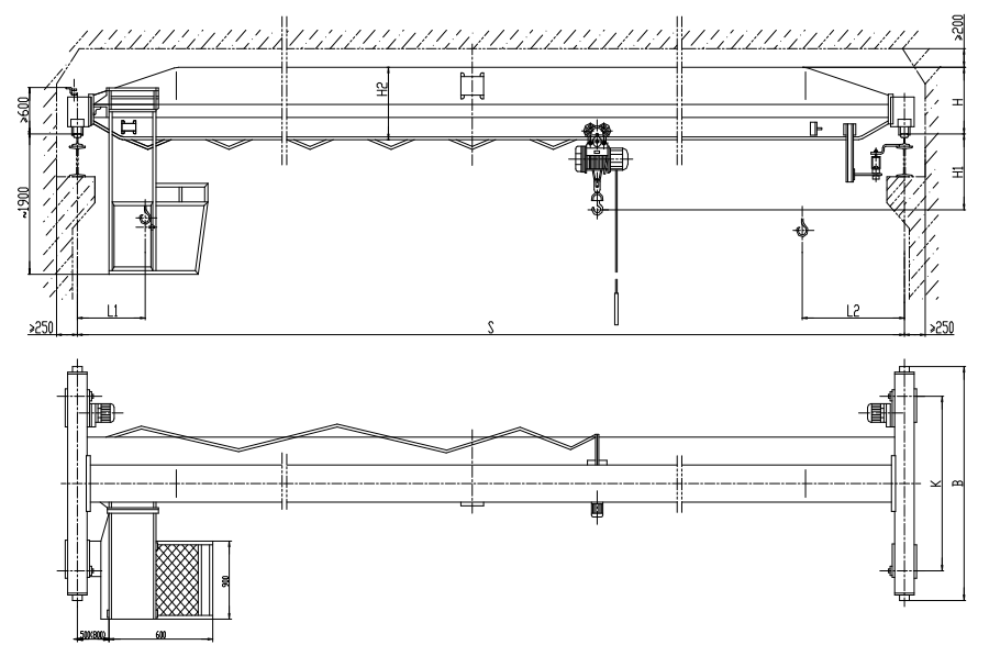 例:起重量:5t,跨度:16.5m,工作級別:A5