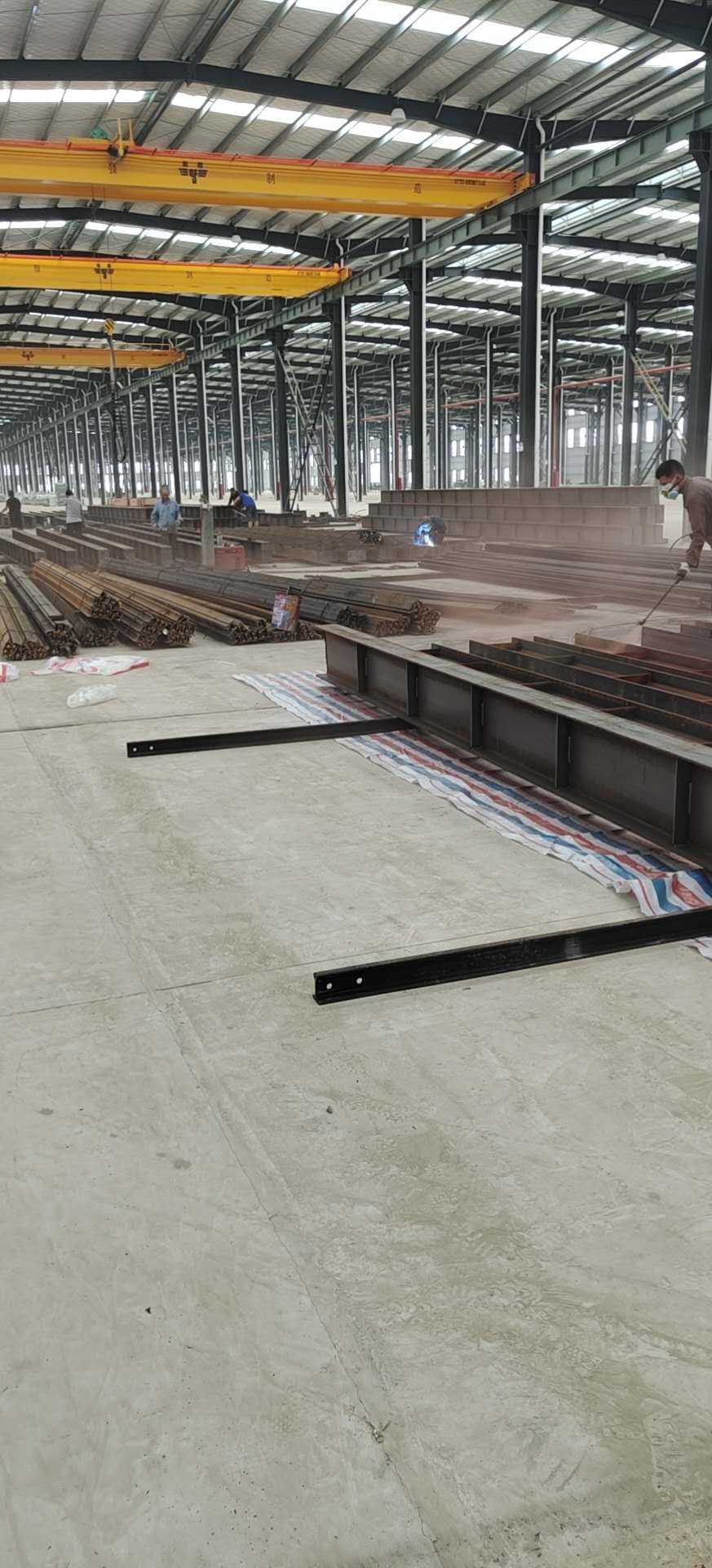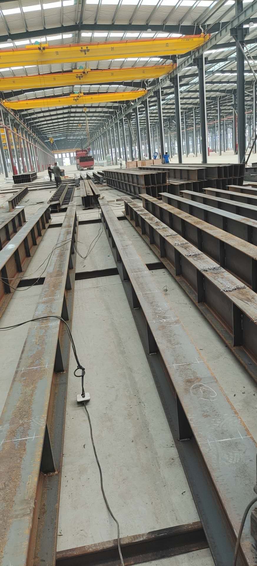 在2020年“疫情”的影響下,跟我們合作多年的老客戶,在經(jīng)濟(jì)不穩(wěn)定的情況下,奮發(fā)前進(jìn)向我們購(gòu)買了27臺(tái)雙梁橋式起重機(jī),并將起重機(jī)基礎(chǔ)材料(承軌梁、軌道、導(dǎo)電滑觸線)工程一并交付我們安裝,平均每跨車間長(zhǎng)度500米,在烈日炎炎的夏天,我們的安裝工人在努力趕工務(wù)必在第一時(shí)間交付給客戶。
